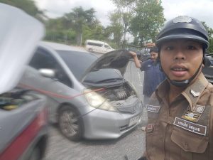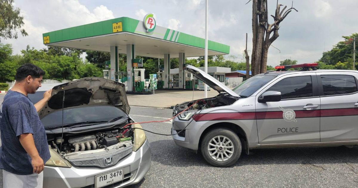 – ช่วยเหลือ รถยนต์ ว.18 บริเวณปั๊มน้ำมัน พีที ขาขึ้น ให้การช่วยเหลือ (พ่วงแบต) เดินทางต่อไปได้