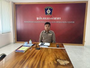 พ.ต.อ.ณัฐวัตร มีมุข ผกก.สภ.หางน้ำสาคร พร้อมด้วยเจ้าหน้าที่ตำรวจที่เกี่ยวข้อง