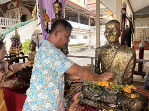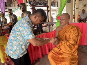 พ.ต.อ.ณัฐวัตร มีมุข ผกก.สภ.หางน้ำสาคร ♦️ร่วมพิธีสรงน้ำพระ รดน้ำดำหัวผู้สูงอายุ เนื่องในวันสงกรานต์ และกิจกรรมมอบเกียรติบัตรให้แก่ผู้ทำคุณประโยชน์ด้านจิตอาสา ของเทศบาลตําบลหางน้ำสาคร ณ วัดหางน้ำสาคร
