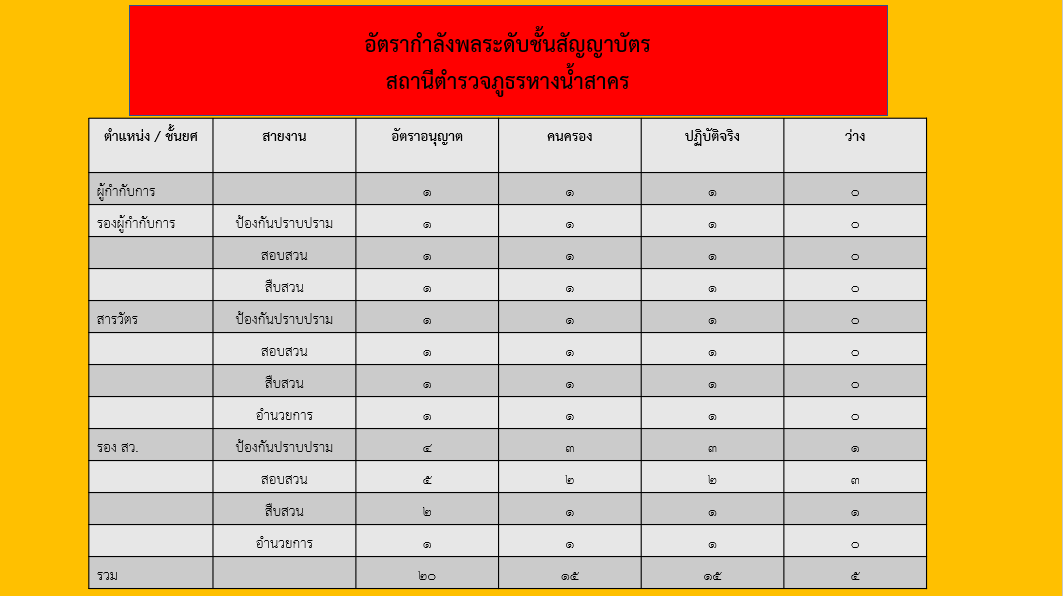 1.สายตรวจรถยนต์ (ร้อยเวร20) รับผิดชอบในเขตตำบลหางน้ำสาคร ตำบลไร่พัฒนา ตำบลอู่ตะเภา
