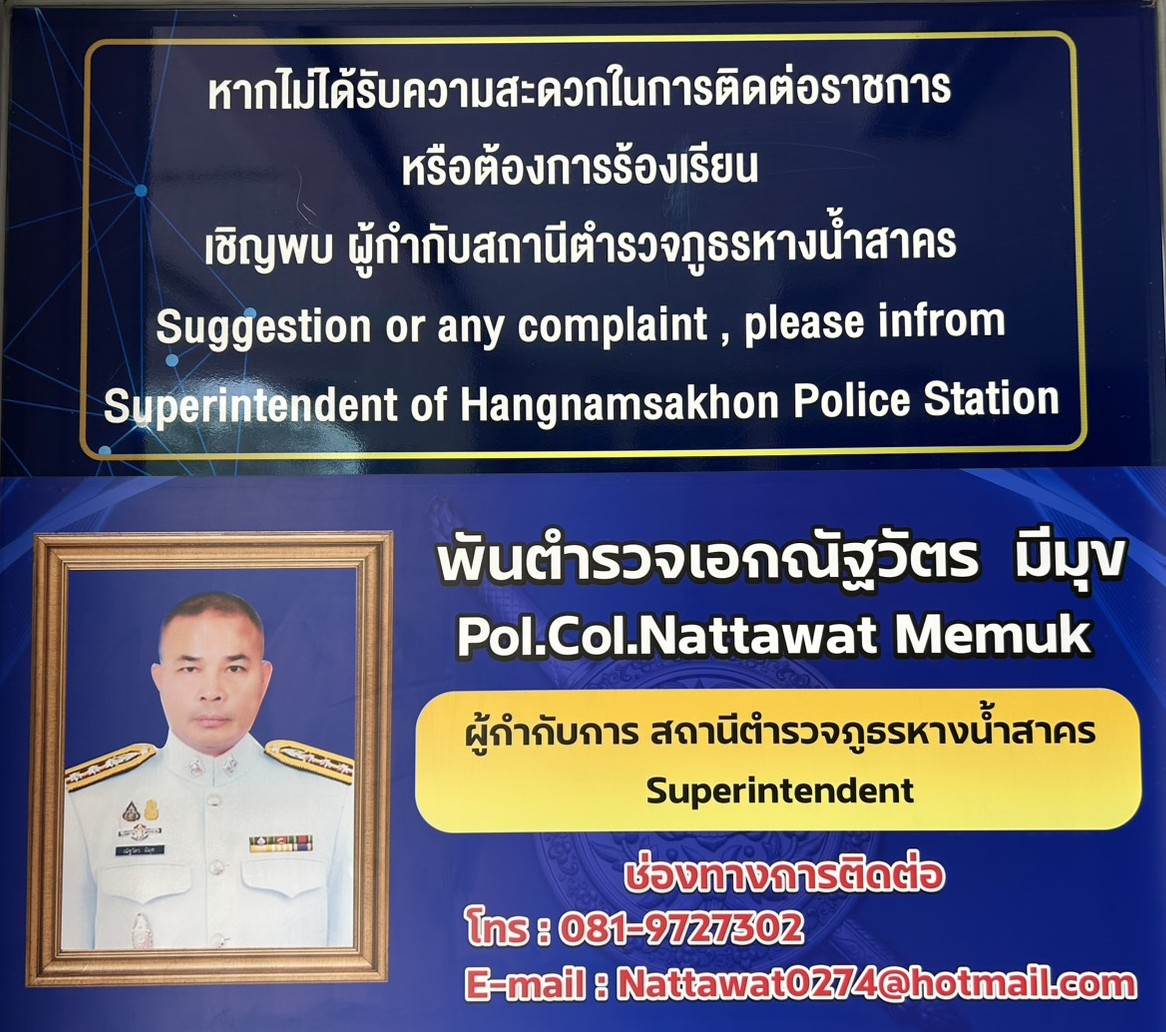 1.แจ้งเรื่องที่ ผกก.สภ.หางน้ำสาคร